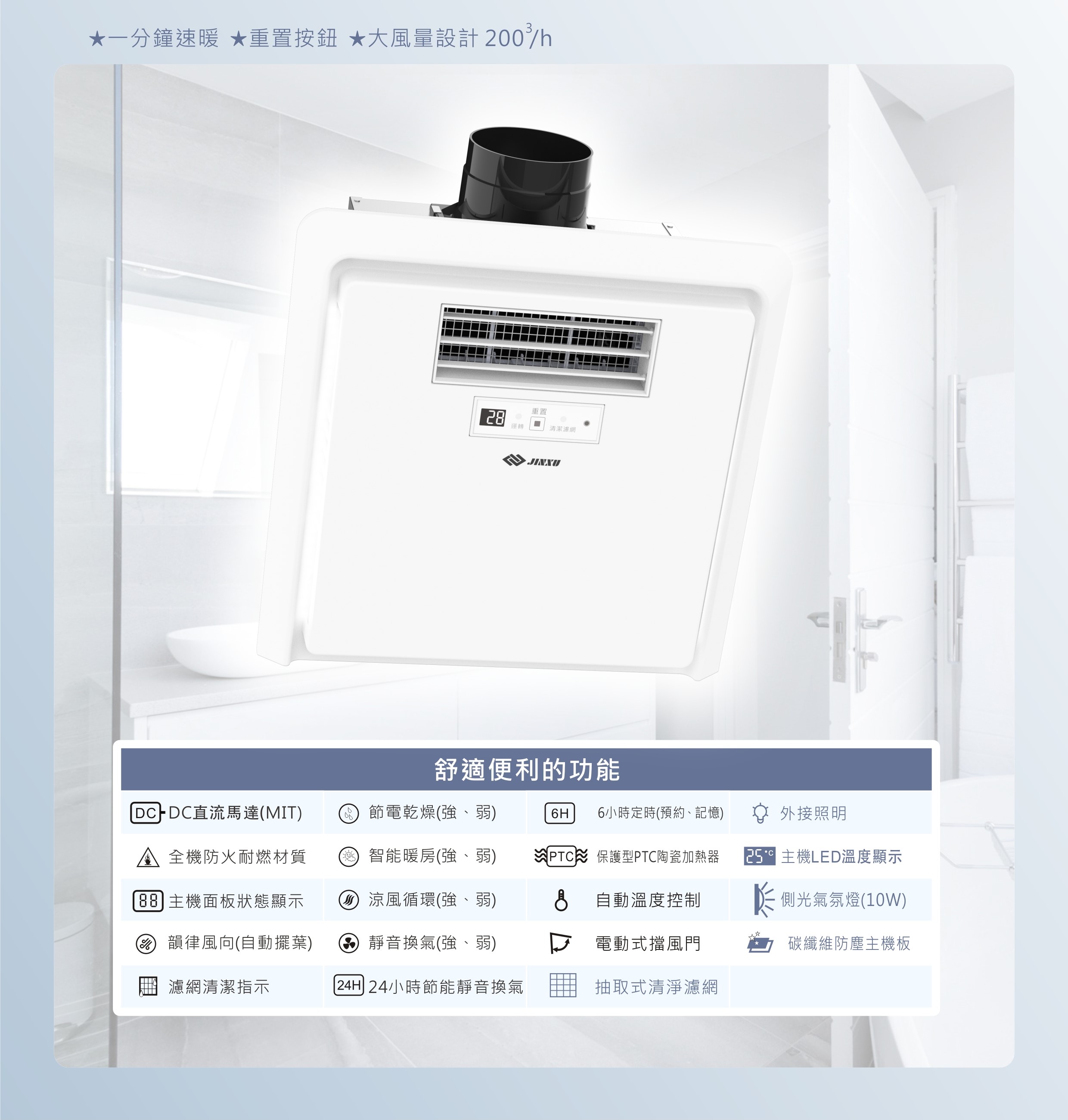 型號:DC302-LW (智慧光觸控款-線控) 額定電壓:220V 額定頻率:60Hz 消耗功率:2400W 管道直徑:ψ100mm 主電源線:ψ5.5mm 安裝尺寸:305×280×180mm 主機重量:7kg 商品產地:台灣
