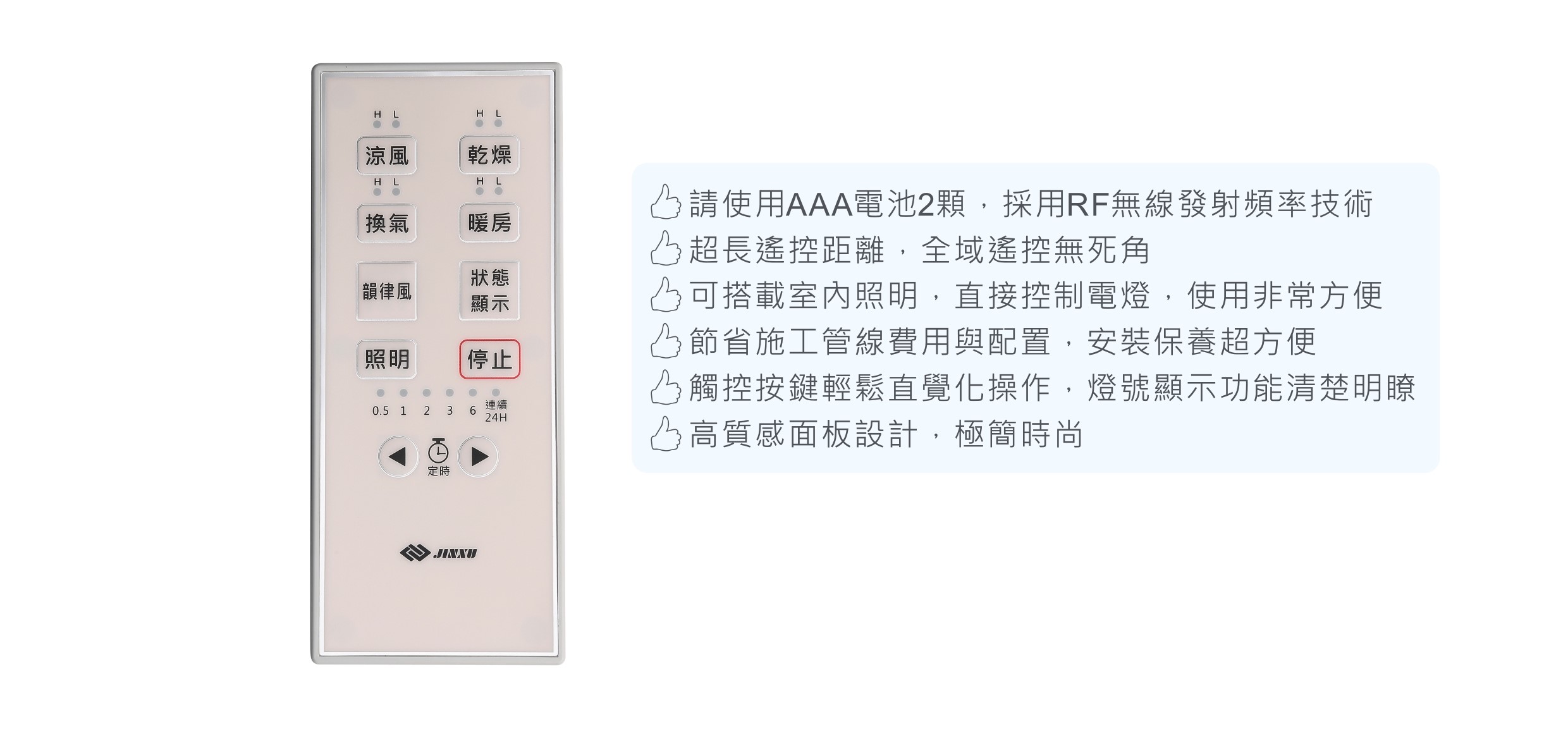 型號:DC302-RW (RF遙控器款-無線) 額定電壓:220V 額定頻率:60Hz 消耗功率:2400W 管道直徑:ψ100mm 主電源線:ψ5.5mm 安裝尺寸:305×280×180mm 主機重量:7kg 商品產地:台灣
